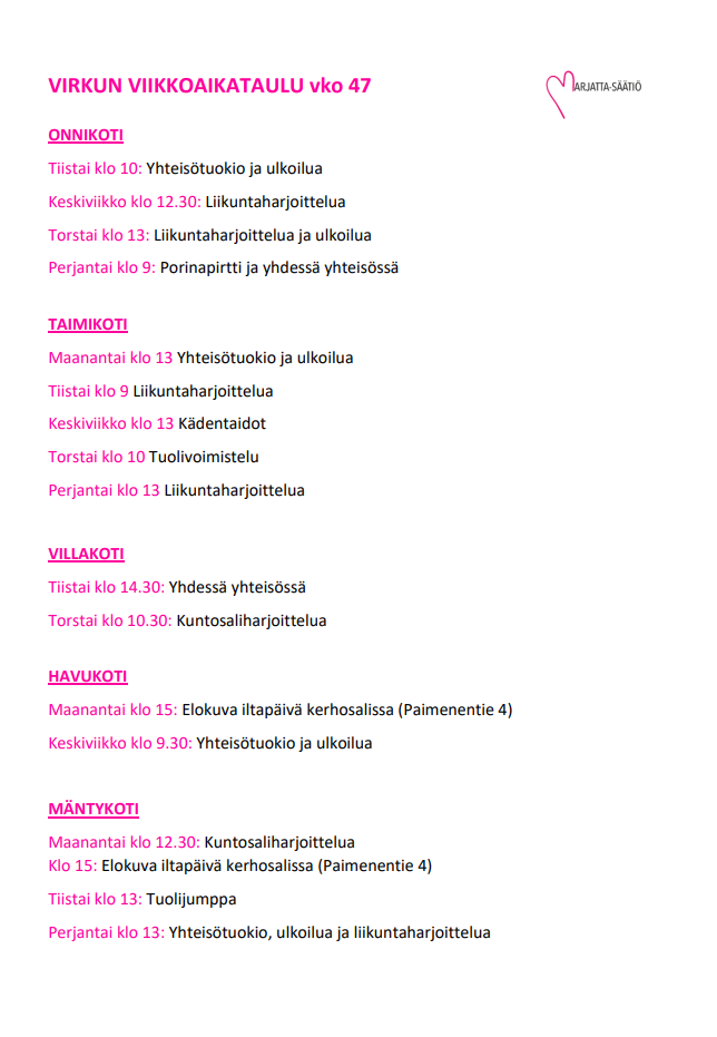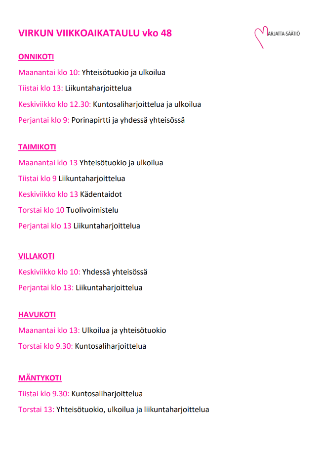 Tarkemmat tiedot kotikohtaisesti löydät alta.